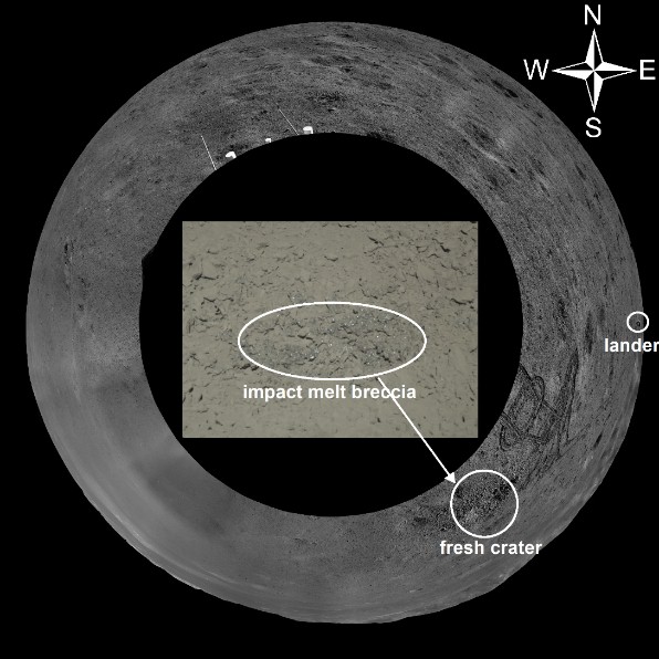Fig. 1. Impact melt breccia and surrounding context (Image by CNSA, CLEP, and AIR)