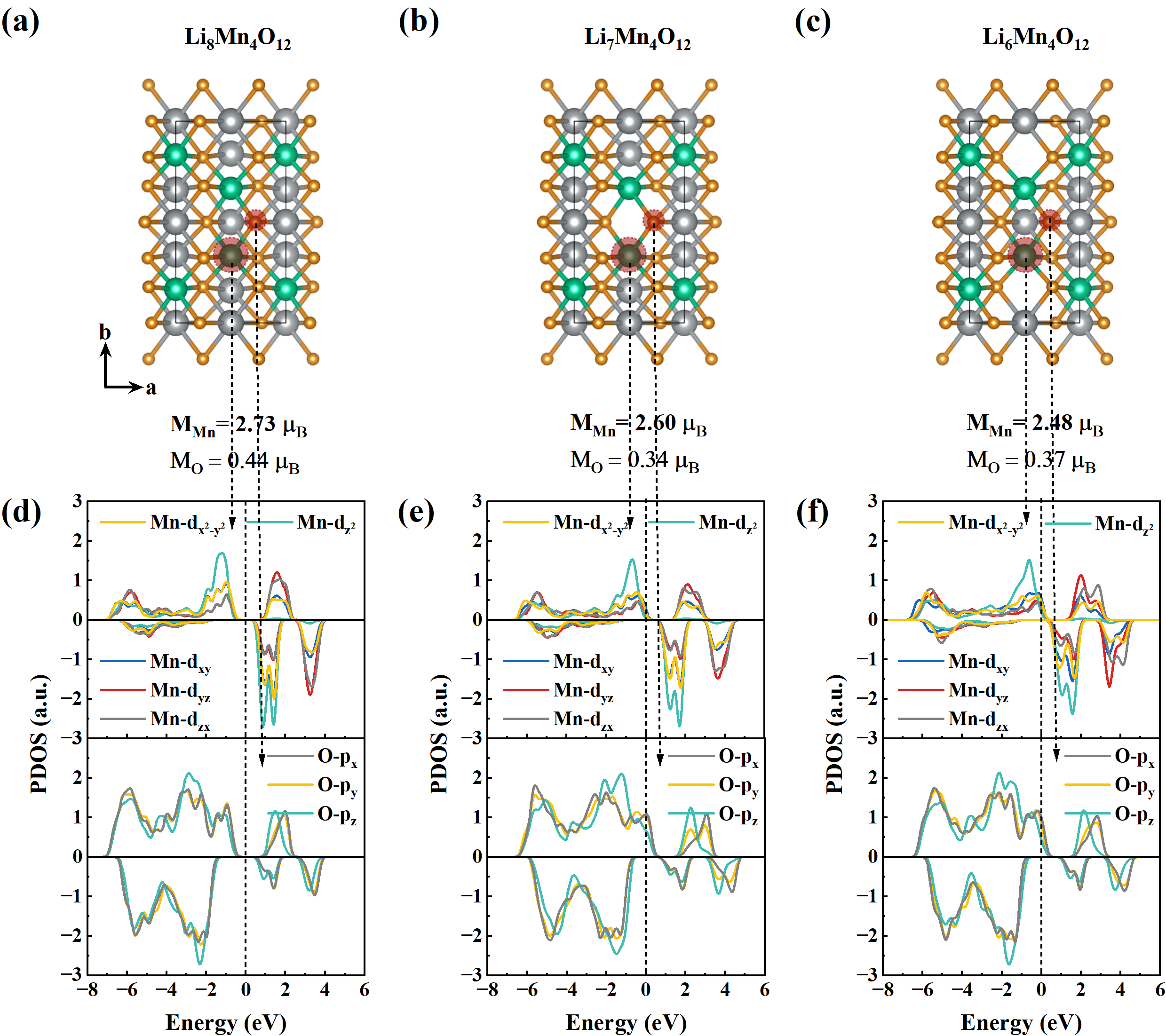 The structure model of Li2MnO3 at different charged states and corresponding projected density of states of Mn and O. (Image by QIU Shiyu)