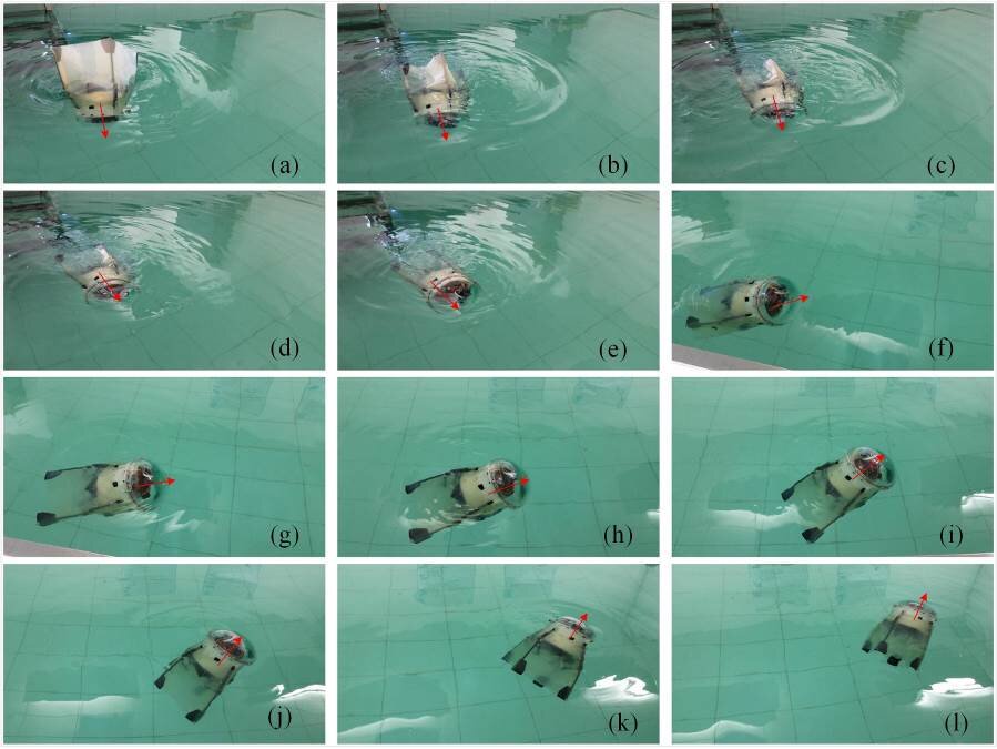 Snapshots of robotic jellyfish performing a hybrid motion interweaving vertical and horizontal swimming. Credit: Science China Press
