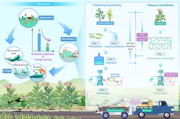 Carbon Emission Life Cycle and Efficiency Comparison: Traditional vs. Tobacco Biorefinery (Image by WANG Fan)