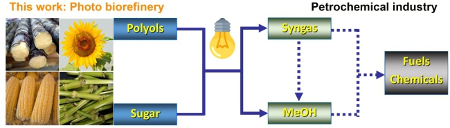 In the current study, the researchers converted biomass-derived polyols and sugars into methanol and syngas (CO+H2) via UV light irradiation at room temperature. The bio-syngas could be further used for the synthesis of methanol.
