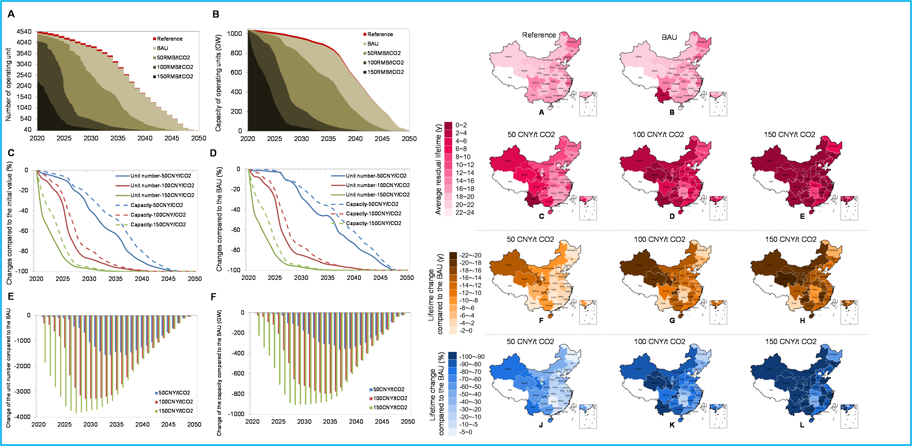 Moreover, the disparity in the carbon pricing effect among China's 29 provinces, autonomous regions and municipalities is significant and the western regions are more vulnerable to the carbon pricing risk than the eastern regions, with the residual lifetime being shortened by between 0.34 and 15.71 years via the carbon price of 50 CNY/tCO2.