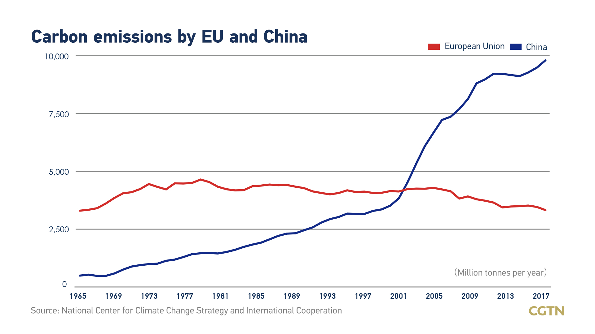Carbon neutrality – or net-zero emissions – means that emissions are balanced by absorbing an equivalent amount from the atmosphere. To achieve that, China has a huge carbon emission burden to shake off. But the burden can be lighter than the world anticipated, as China's carbon emission data referred in the Carbon Emission inventory is actually about 15 percent higher than the real one, Zhang told CGTN.