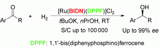 Researchers from the State Key Laboratory for Oxo Synthesis and Selective Oxidation at the Lanzhou Institute of Chemical Physics (LICP) of the Chinese Academy of Sciences (CAS) have developed a new type of efficient ruthenium catalysts containing rigid chiral diamines and achiral commercially available diphosphanes (DPPF or DPEphos), which affords excellent enantioselectivities (up to 99% ee) and reactivities (up to S/C=100 000) in asymmetric hydrogenation of simple aromatic ketones and functionalized ketones.