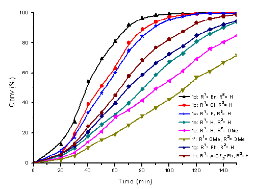 Effect of the electronic properties on the rate of hydrogenation of 4a in nPrOH under 10 atm of H2 at room temperature in the presence of 0.1% mol of catalyst. The Ru-catalyst was composed with DPPF and the corresponding amine.(Image by HUANG Hanmin et al.)