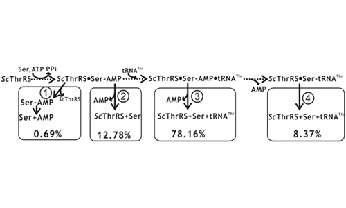 Aminoacylation catalyzed by aminoacyl-tRNA synthetases (aaRSs) involves covalent linkage of amino acids with their cognate tRNAs and represents the initiating step in the complex process of translation. However, the mechanism of amino acid selection and editing by eukaryotic cytoplasmic ThrRSs remains to be elucidated. Now, a new study from Chinese Academy of Sciences provides the first comprehensive elucidation of the translational fidelity control mechanism of eukaryotic Threonyl-tRNA synthetase (ThrRS).