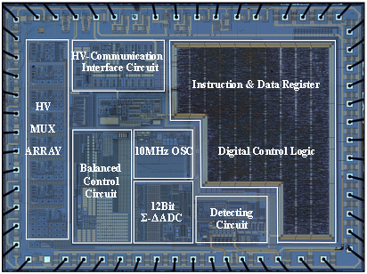 The research team dealt with a series of difficulties, including data acquisition under high common mode voltage, communication and cooperation mechanism, special ESD design, high precision voltage reference, high precision ADC converter, equalization control and digital logic control, and finally a manufactured chip was achieved. The test showed that the maximum total measurement error is 2.1‰.The cells can be equalized either with the switch buried inside the chip, or by the discrete components outside driven by the chip. For the application that demands more than one chip, the chips can be stacked and communicate with each other in a shift-level way. Besides the data acquisition function, the chip can offer the fault detection for cells, making it possible to monitor and manage the battery pack intelligently. In the reliability test, the designed chip passed a series of ESD tests, including the voltage of 2000V(Class 2) test in HBM, 1000V(Class 4) test in CDM and 200V(Class 2) test in MM.