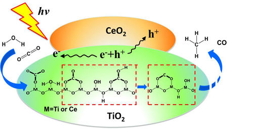 A research team led by Prof. WANG Chuanyi at Xinjiang Technical Institute of Physics & Chemistry (XTIPC) of Chinese Academy of Sciences employed ceria as a basic promoter to strengthen the interaction of CO2 with photocatalyst surface and fabricated highly dispersed CeO2/TiO2 and bare TiO2 catalysts.