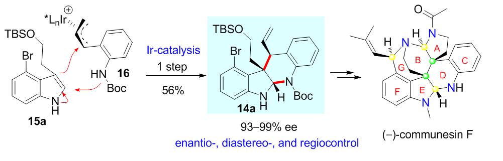 The research paper titled “Ir-Catalyzed Asymmetric Total Synthesis of (−)-Communesin F” was favorably commented by three reviewers and has been published online in the Journal of the American Chemicial Society.