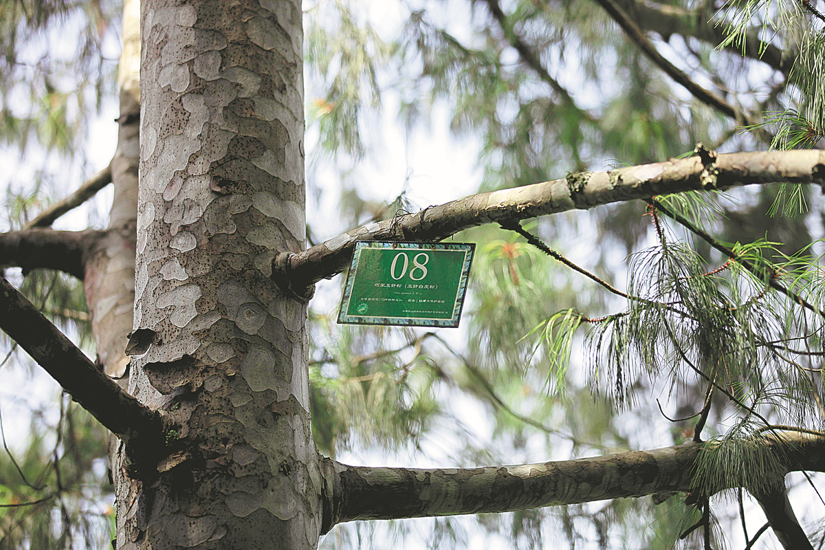 In the garden, Sun showed off a special tree under national first-class protection-the Qiaojia five-needled pine, which is endemic to Yunnan's Qiaojia county.