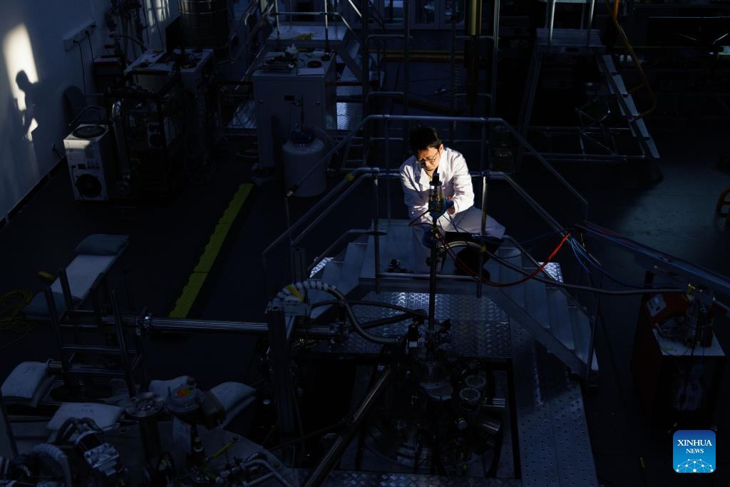 Researcher Li Gang works at the ultra-low temperature high magnetic field quantum oscillation experimental station of the Institute of Physics of the Chinese Academy of Sciences in Beijing, capital of China, on Jan. 26, 2026. (Xinhua/Jin Liwang)