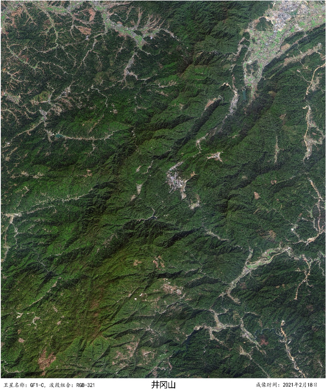 A remote sensing satellite image of Jinggang Mountains. (Credit: AIR).