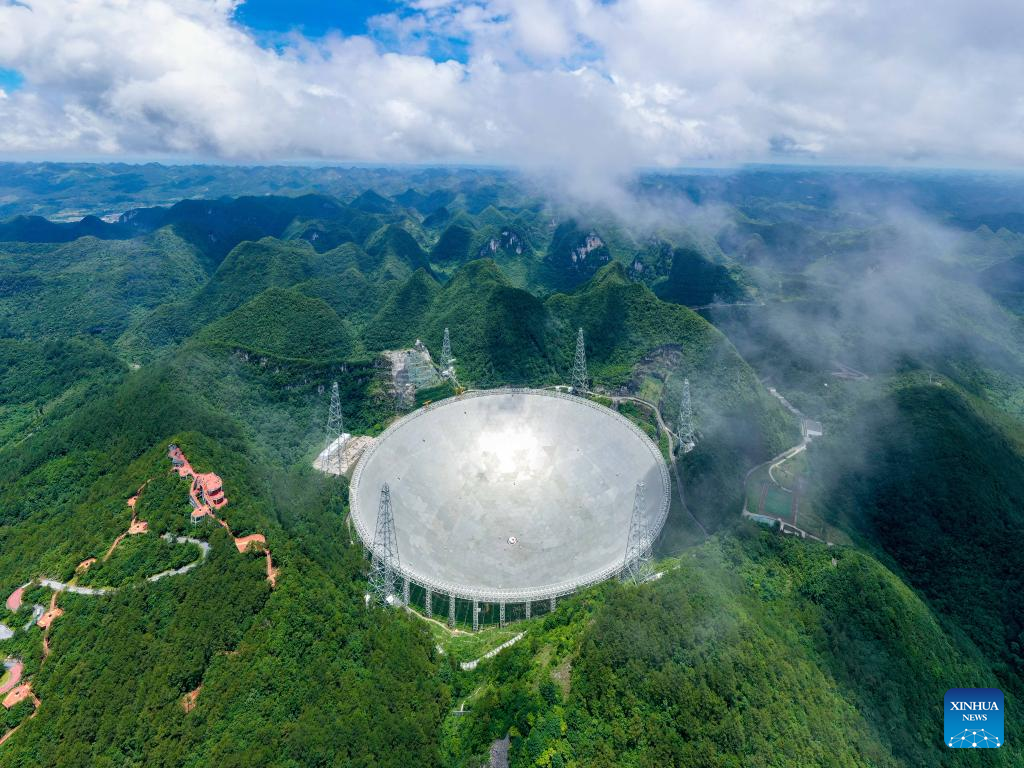 Located in a naturally deep and round karst depression in southwest China's Guizhou Province, FAST started formal operation in January 2020 and officially opened to the world on March 31, 2021. It is believed to be the world's most sensitive radio telescope. With FAST, scientists have identified over 660 new pulsars. (Xinhua/Ou Dongqu)