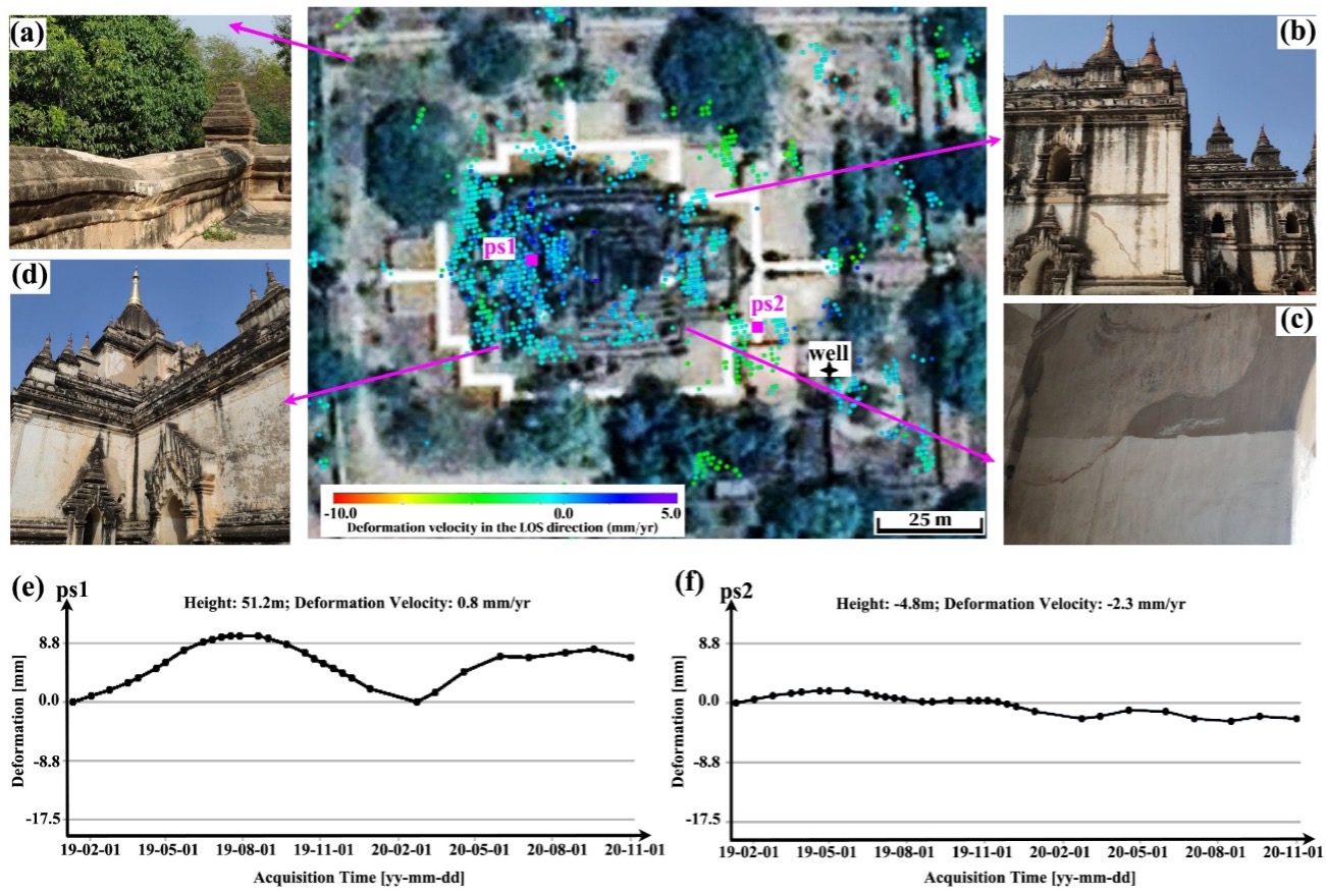 However, its age, combined with the surface subsidence and earthquakes over the region have posed great threats to the stability of the historic monuments and iconic pagodas at the vast site. Thus, the monitoring of landscape surface subsidence and vulnerability of the monuments is crucial to the protection and sustainable management of the Bagan heritage site.