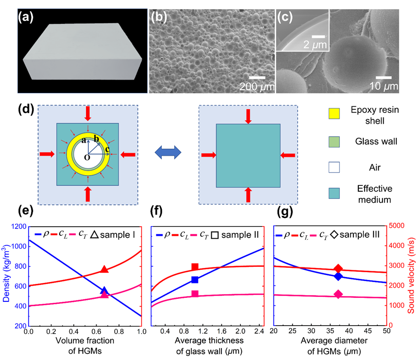 They employed a four-phase model to characterize and precisely regulate the acoustic parameters of the syntactic foam. Combined with Biot theory, they realized synergetic regulation of structure and material parameters in the design of the metafluid.