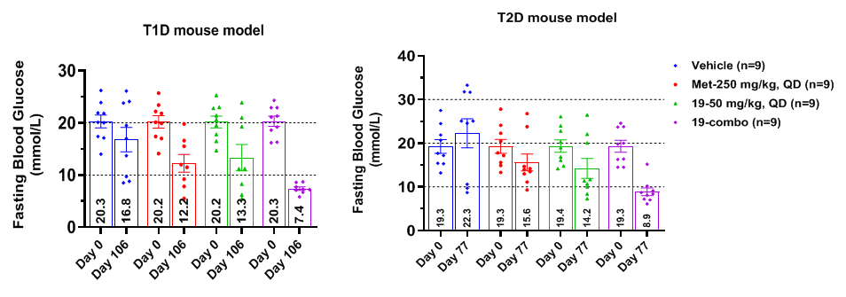 Antidiabetic efficacy of IHMT-MST1-58 (19), metformin, and combo in the T1D and T2D mouse models. (Image by WANG Beilei)
