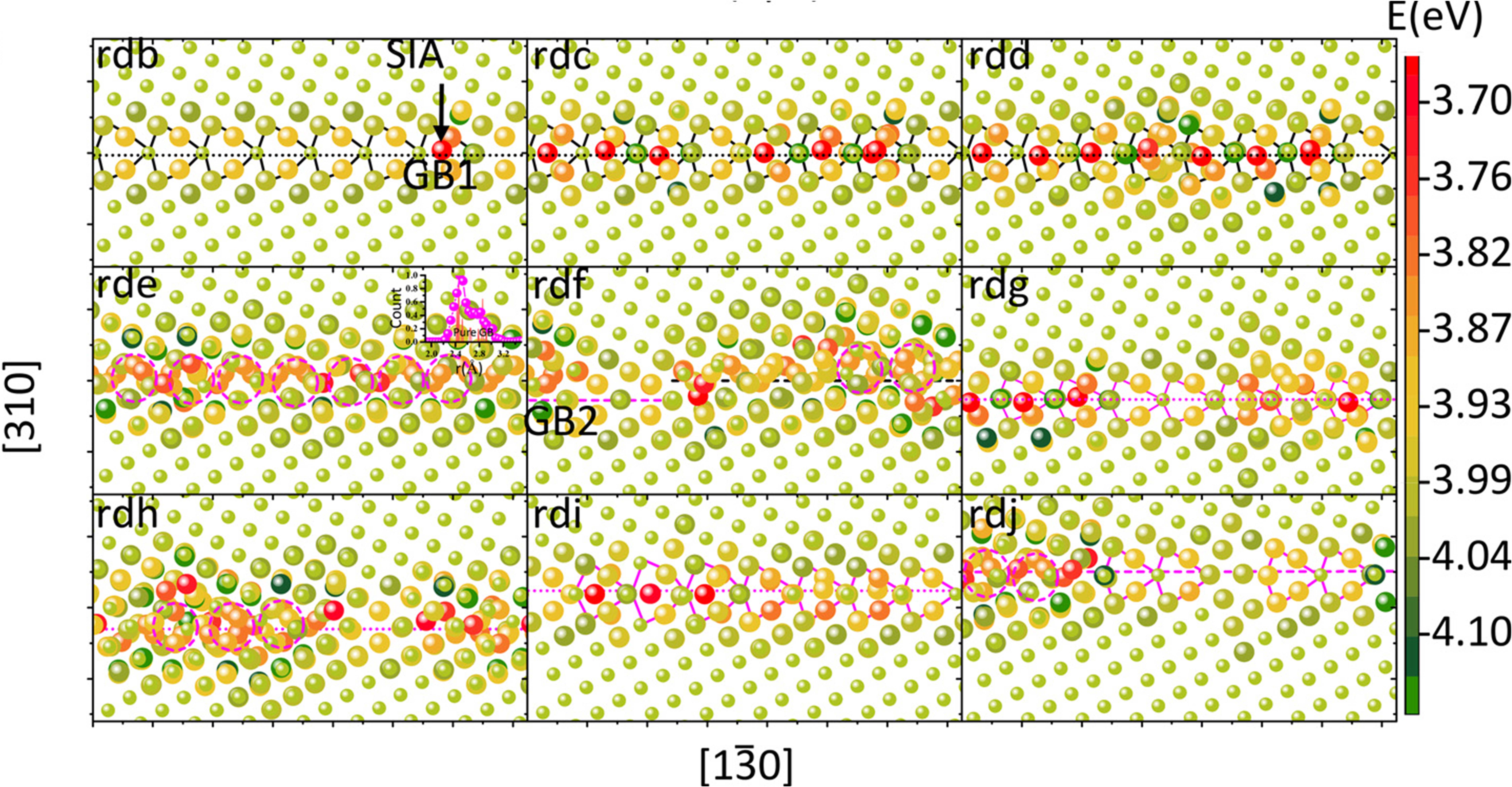 The researchers investigated the accumulation mechanisms of radiation defects at Fe GBs, mainly including the SIAs loading in GBs at a low temperature and its effects on the role of GBs under radiation. The results suggested that the SIAs preferentially segregate to the GB at a high dose rate and/or a low temperature.