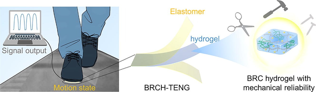 Employing this BRC hydrogel as electrode material, the researchers fabricated the BRC hydrogel based TENG (BRCH-TENG) with excellent electrical output performances and mechanical safety. The stable mechanical property under continuous physical impact contributes to improving the long-term stability of the BRCH-TENG, thus prolonging its service life upon accidental physical impact.