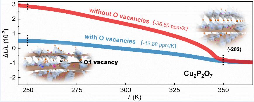 The enhanced negative thermal expansion of Cu2P2O7 associated with oxygen vacancy. (Image by XIE Lulu)