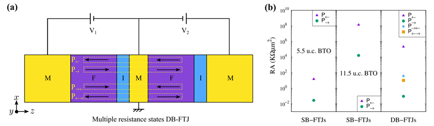 Researchers also proposed that two additional polarization states with head-to-head and tail-to-tail ferroelectric polarization can be achieved by separately controlling the polarization direction of each barrier, resulting in multiple resistance states.
