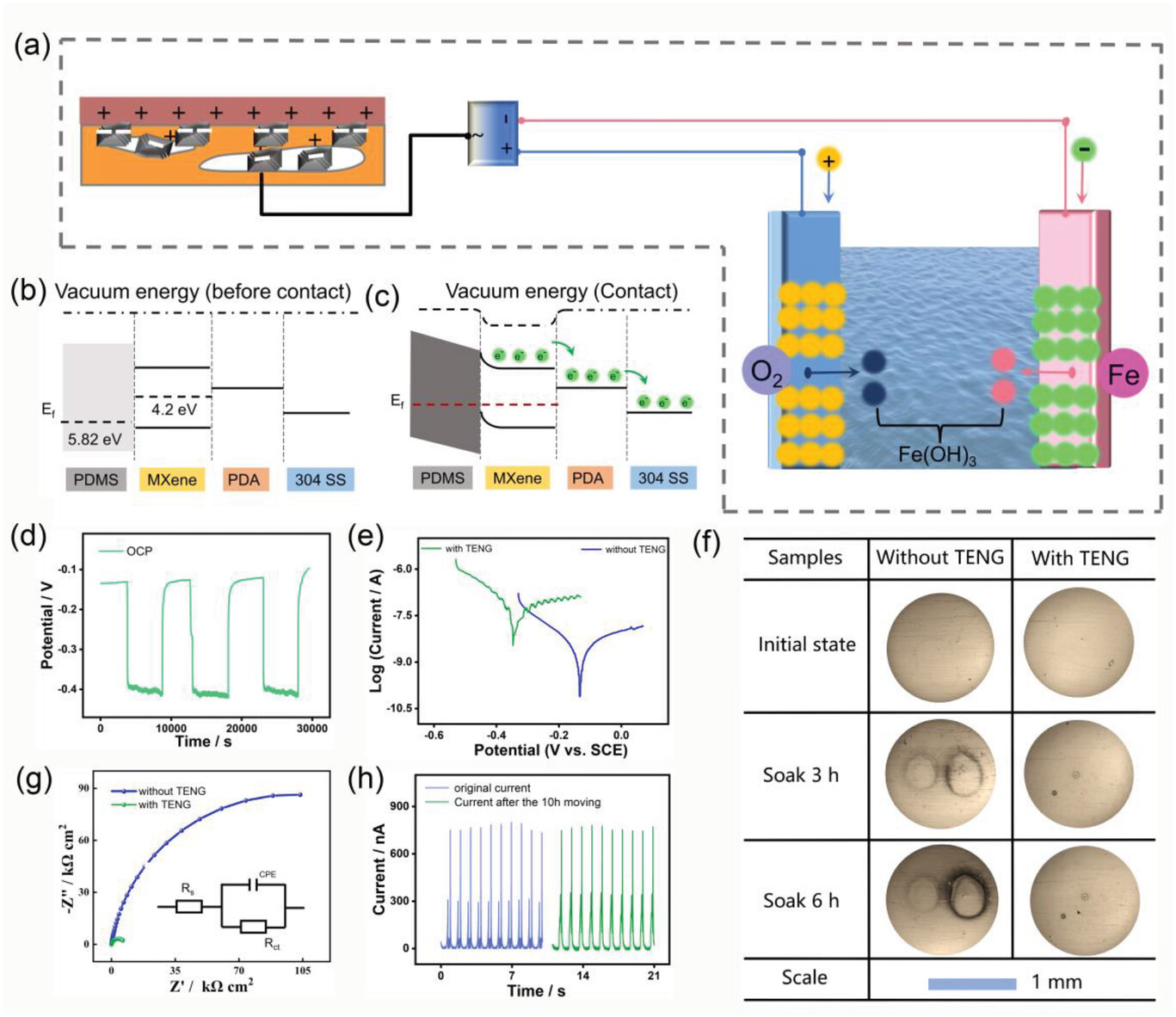 Corrosion causes significant losses to various industries. Cathodic protection is used to protect steel in marine. Triboelectric nanogenerators (TENG) converts mechanical energy into electricity based on triboelectrification and electrostatic induction. Undoubtedly, TENG-cathodic-protection is in line with the requirements of contemporary low-carbon energy conservation.