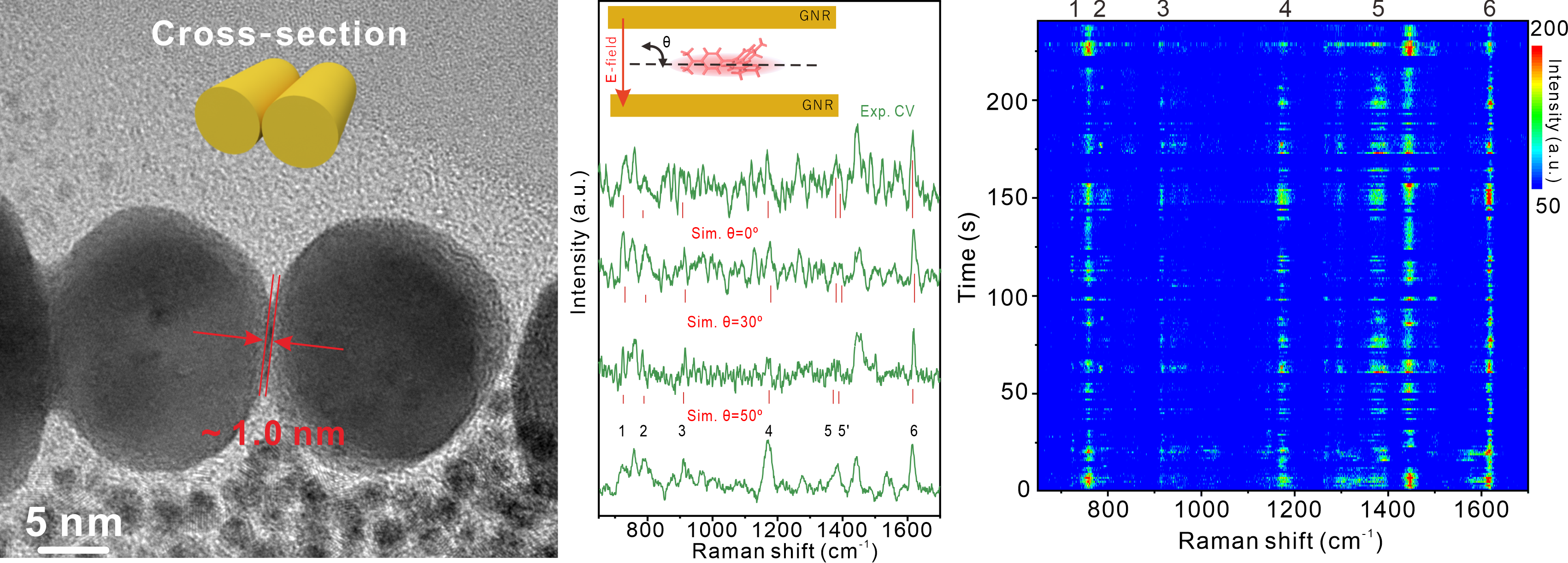 Combining density functional theory (DFT) calculations and SERS mapping results, they concluded that the single crystalline violet molecules can be confined in sub-nanometer space.