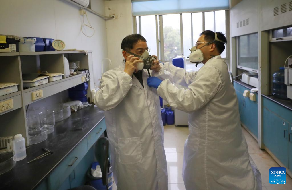 Reseachers wear masks at a laboratory in the Shanghai Institute of Optics and Fine Mechanics, Chinese Academy of Sciences in east China's Shanghai, Feb. 29, 2024. (Xinhua/Fang Zhe)