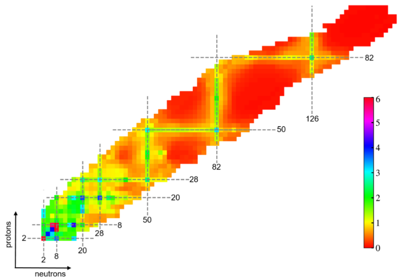 The atomic nucleus is composed of protons and neutrons. In 1930s, scientists discovered that nuclei exhibit relatively stable properties when the number of protons or neutrons is 2, 8, 20, 28, 50, 82, or 126. These numbers are known as "magic numbers." The discovery of magic numbers is regarded as direct evidence of the shell structure of atomic nuclei.