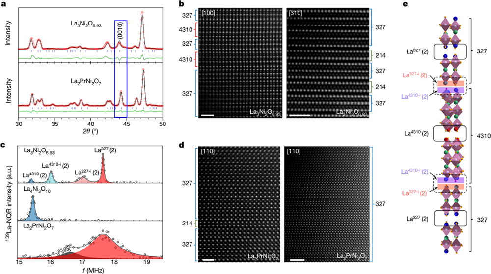 Fig. 1 Characterizations on the micro-structures of La3-xPrxNi2O7-δ (x = 0, 1) samples. (Image by Institute of Physics)