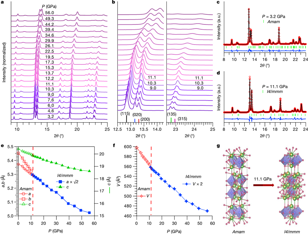 Fig. 2 Pressure-induced structural transition in La2PrNi2O7. (Image by Institute of Physics)