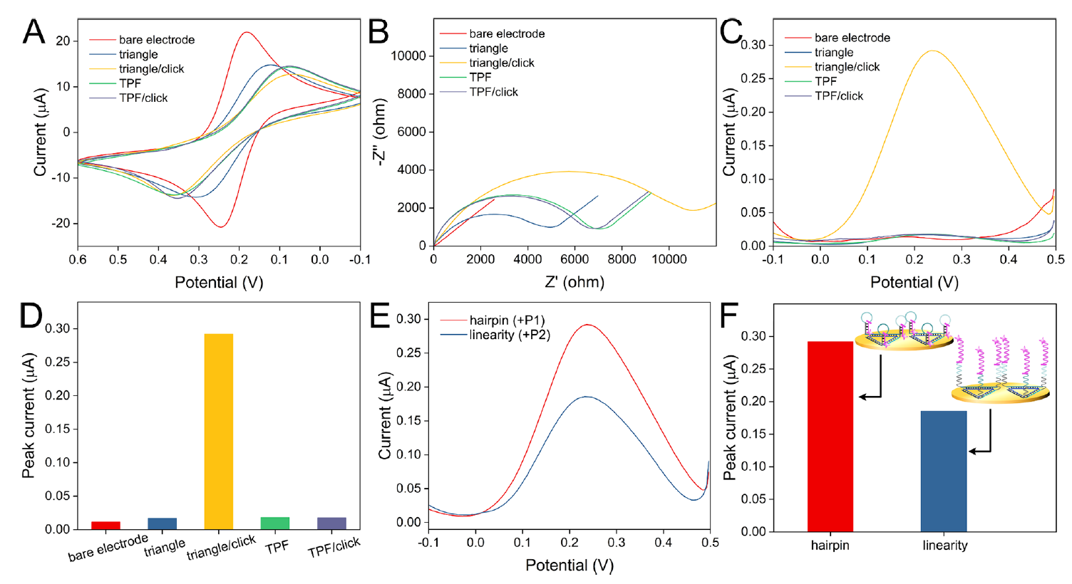 Due to the design of lateral edges of the DNA TPF, multiple hairpins with ferrocenes can be formed, which shorten the distance between electrochemical species and the electrode (Figure 2).