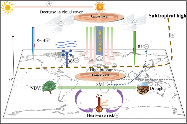 Schematic diagram of possible physical processes leading to the occurrence and intensification of heatwave risk. (Image by XIEG)