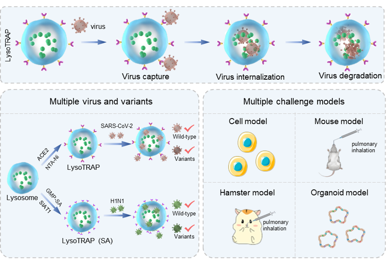 Researchers from the Institute of Process Engineering (IPE) of the Chinese Academy of Sciences have recently developed a novel lysosomal strategy for clearing viruses and their variants. This lysosomal "TRAP" (lysoTRAP) shows potential for inhibiting infection by viruses and variants in cell, mouse, hamster, and human lung organoid models.
