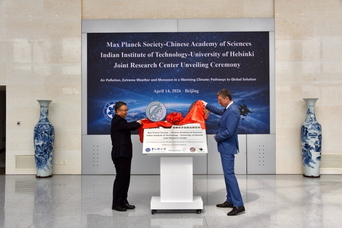 The Center is a joint initiative of the Max Planck Society (Germany), CAS (China), the Indian Institute of Technology Madras (India), and the University of Helsinki (Finland). Patrick Cramer, President of the Max Planck Society and HE Hongping, Vice President of CAS jointly unveiled the plaque. The inauguration ceremony was presided over by JIANG Dabang Director-General of IAP.