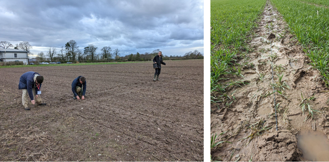 Deployment of fiber-optic cable (left) and the soil condition near the cable. (Image by Marine Denolle)