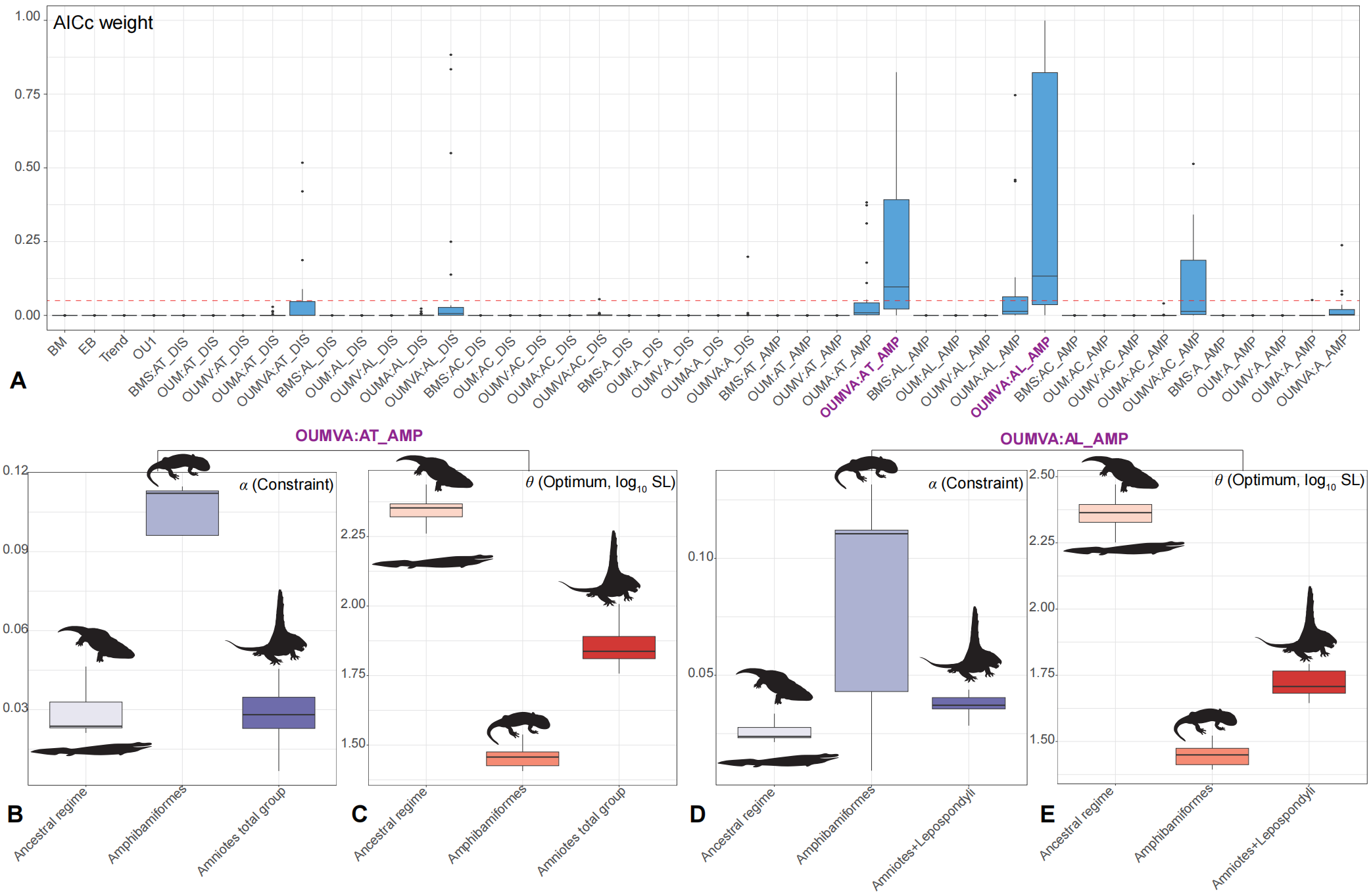 Results of evolutionary model fitting for body size (using log10 SL and dated trees constrained as Topology 1). (Image by YU Yilun et al.)
