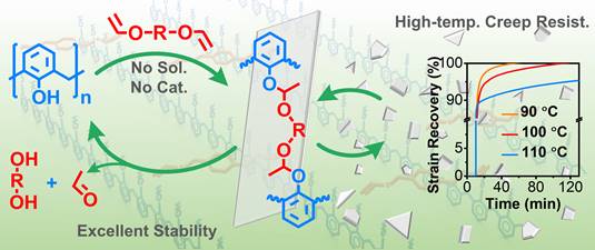 A research group of Key Laboratory of Bio-Based Polymeric Materials Technology and Application of Zhejiang Province at the Ningbo Institute of Material and Engineering (NIMTE) of the Chinese Academy of Science (CAS) developed a new type of reprocessed thermosets based on acetal exchange chemistry, which possess excellent creep resistance at high temperature (up to 100 °C). The study was published in Macromolecules.
