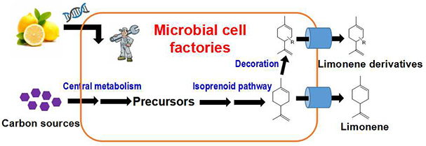 Development in metabolic engineering and synthetic biology offers a promising alternative for constructing microbial cell factories to realize sustainable and efficient supply of limonene and its derivatives.