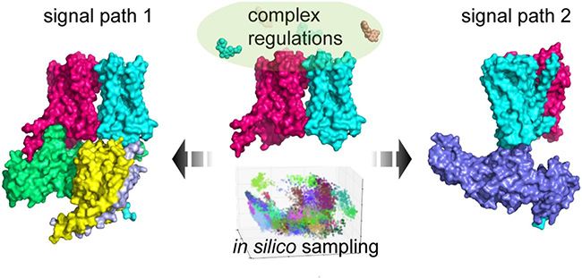 Illustration of the idea to interpret large complex multi-body regulation in different signaling pathways using single-particle cryo-EM and simulation techniques (Image by LIAO Chenyi and LIU Ye)