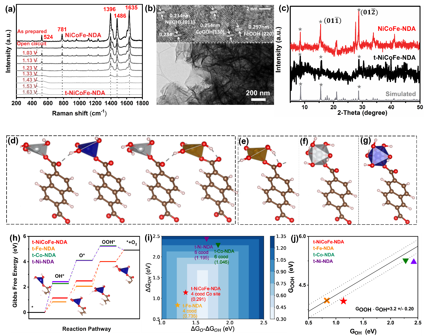 In situ spectroscopy combined with theoretical calculations to illustrate the water oxidation; conformation of NiCoFe-NDA and the study of the water oxidation mechanism. (Image by SICCAS)