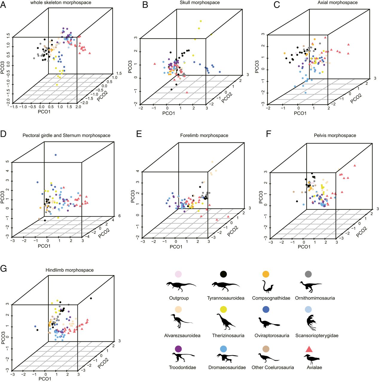 Fig. 2 Morphological disparity analyses showing the differences between birds and their dinosaur relatives (Image by IVPP)