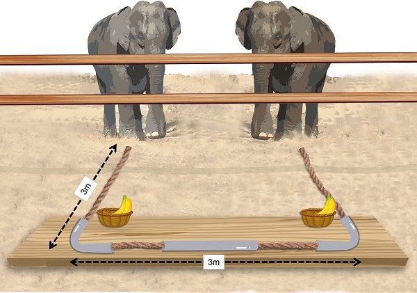 In order to understand how elephants maintain their cooperative relationships when competition can occur, the researchers studied a group of nine semi-wild Asian elephants in Myanmar by exposing them to an open-access loose-string pulling apparatus.