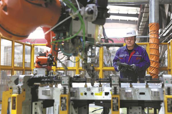 A worker monitors a production line for the battery casings for new energy vehicles in Ningde, Fujian province, last month. (WANG WANGWANG/FOR CHINA DAILY)