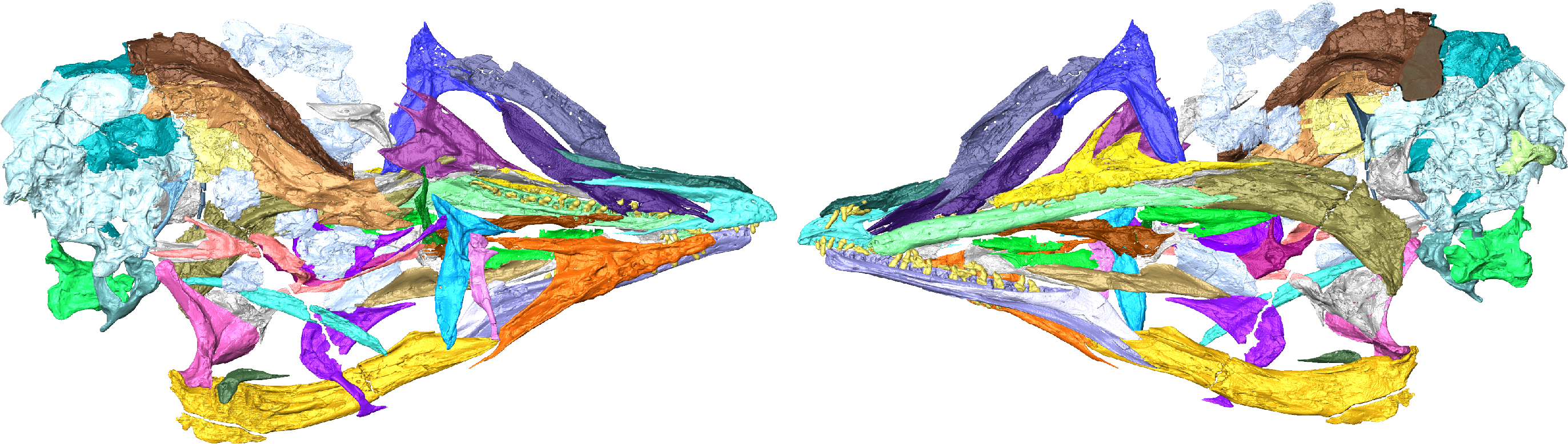 By using high-resolution CT-scanning, the research team was able to digitally identify, isolate, and assemble all skull bones into a detailed three-dimensional reconstruction. This work revealed many anatomical details not known for early birds. Yuanchuavis shows a mosaic of dinosaurian and bird traits such as a feathered bird body with wings, a toothed mouth, and an immovable dinosaurian palate and snout.