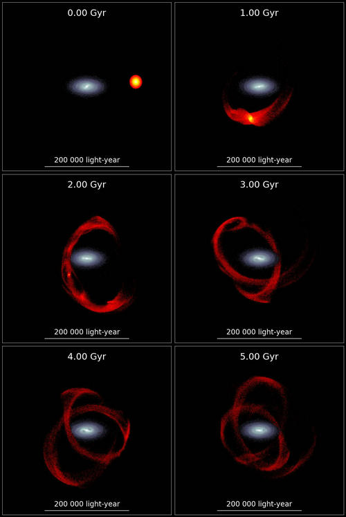 The simulated process of Cetus Stream progenitor merging with the Milky Way. (Image by CHANG Jiang)
