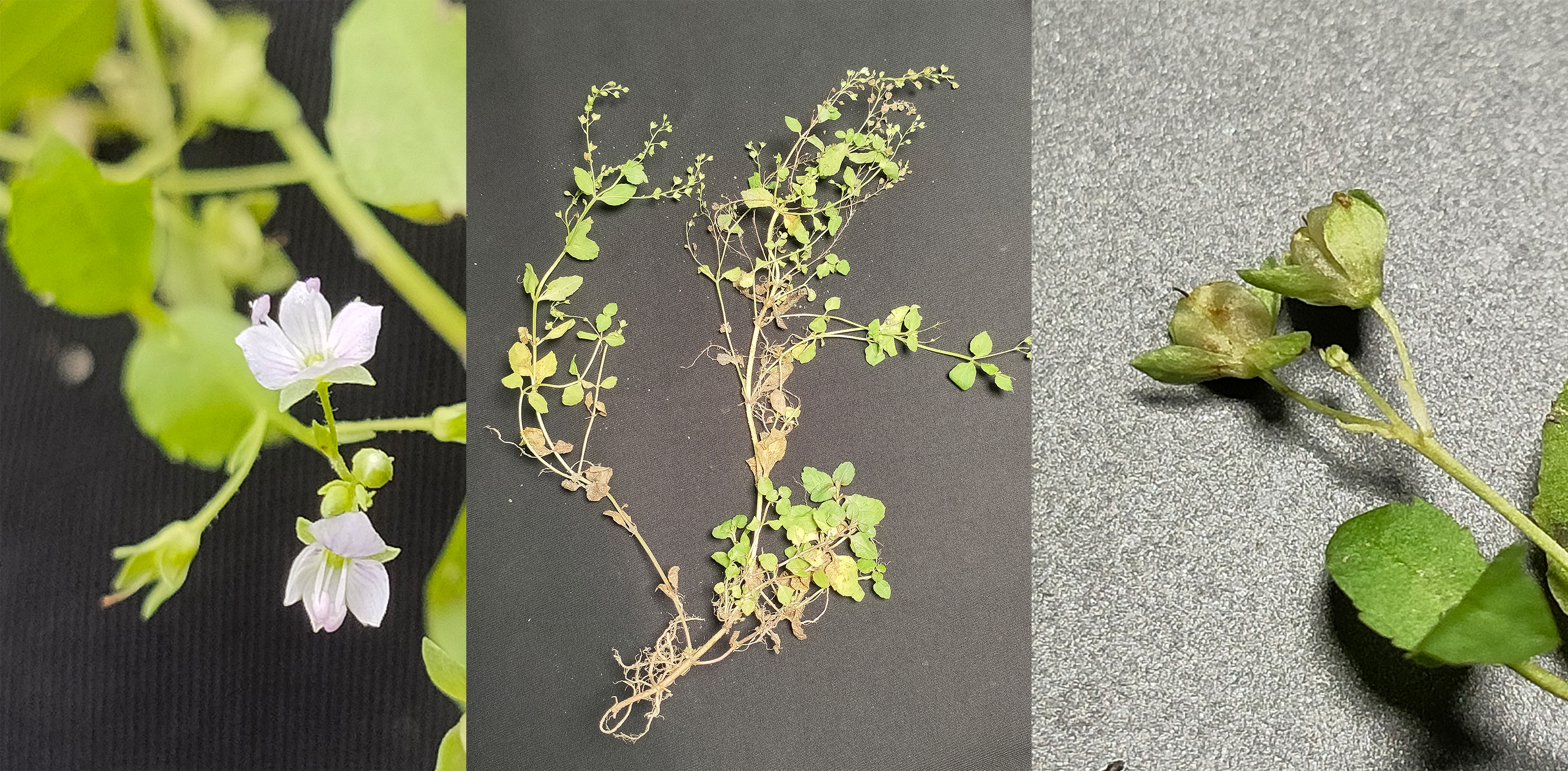 Another new species, Veronica hongii, was found along the Huiwan River in Zhuxi County. It is a short herb, and its plants are often clustered, with trailing stems, adventitious roots and pink flowers.