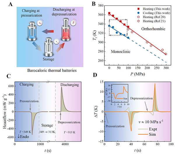 Against this background, researchers led by Prof. LI Bing from the Institute of Metal Research of the Chinese Academy of Sciences have proposed and realized a new concept—barocaloric thermal batteries based on the unique inverse barocaloric effect.