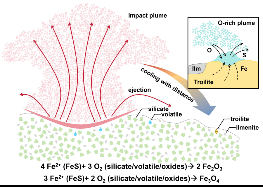 Graphical depiction of the formation scenario of ferric oxides in Chang'e-6 lunar sample. (Image by IGCAS)